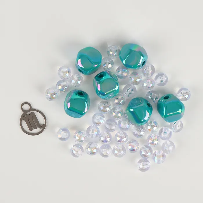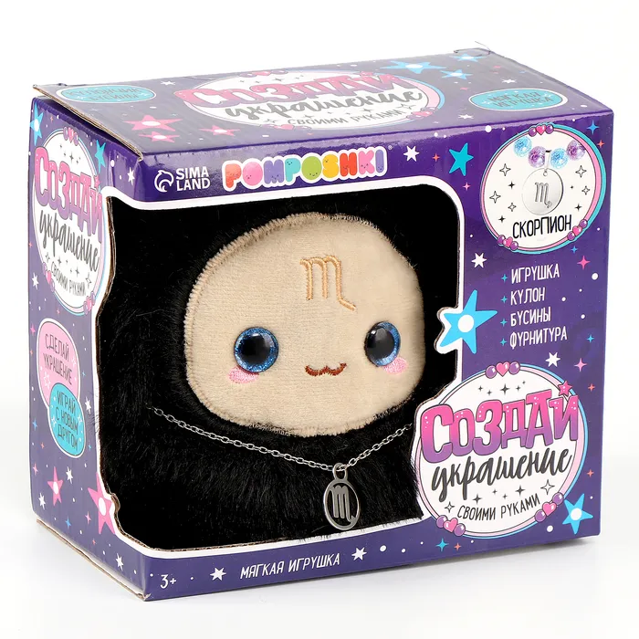 - В наборе представлены мягкая игрушка Скорпион, материалы для создания украшений и кулон со знаком зодиака.