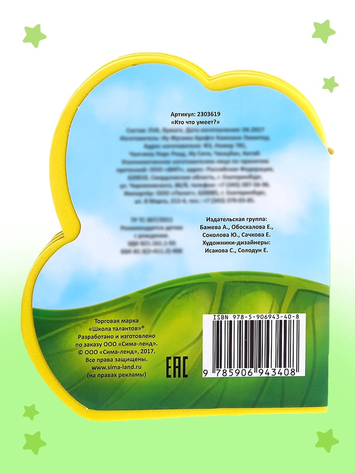 У книги нет острых углов, она лёгкая, поэтому она безопасная даже для самых маленьких деток.