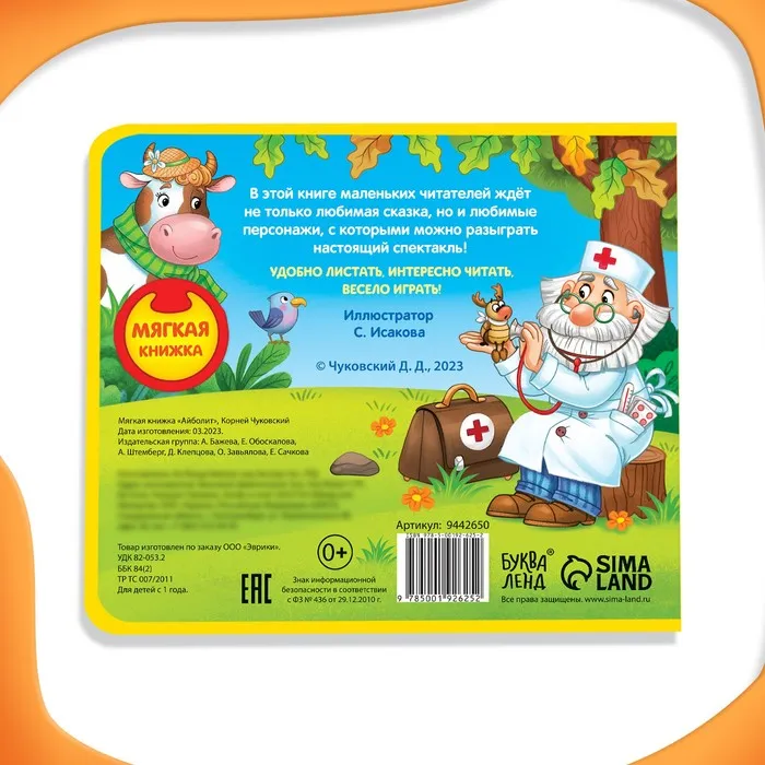 Мягкая книжка «Айболит», Корней Чуковский — Характеристики
