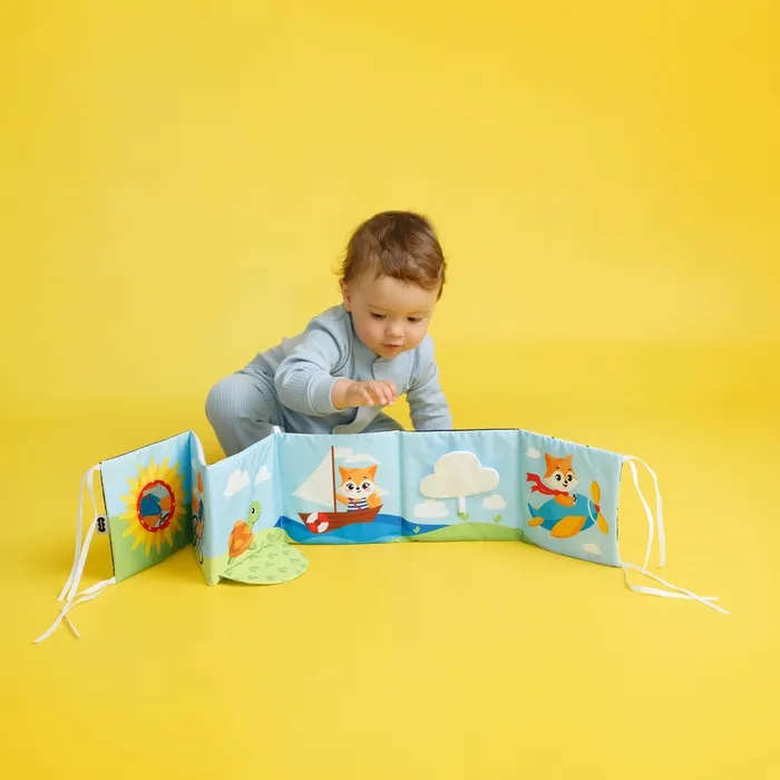 Эта книжка-бортик — не просто игрушка, а инструмент для гармоничного развития ребёнка. Она помогает малышу учиться фокусировать взгляд, различать цвета и формы, а также знакомиться с окружающим миром через истории о Лисёнке-путешественнике. Проследите, как ваш ребёнок будет радоваться приключениям Лисёнка, исследовать шуршащие элементы и находить отражение в мягком зеркале. Это не только развивает, но и создаёт моменты радости и удивления.