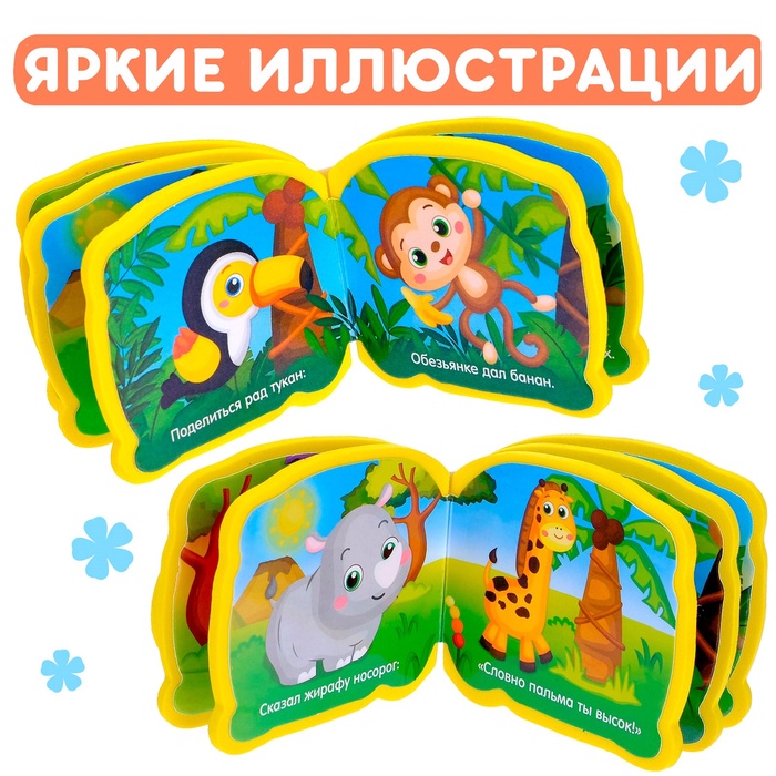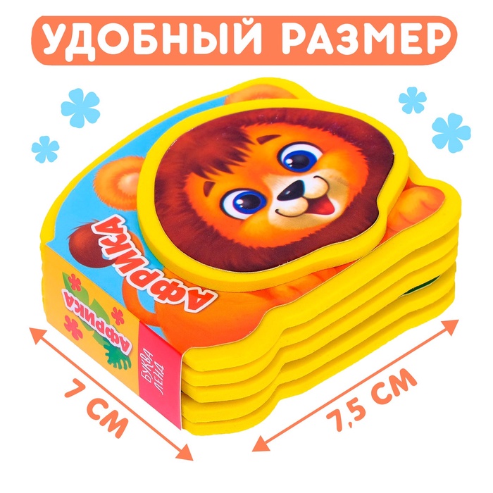 Мягкая книга сделана из приятного на ощупь пористого материала ЭВА. На каждой странице приклеены яркие иллюстрации с милыми персонажами, которые непременно понравятся ребёнку. С этой книгой малыш узнает, какие животные обитают в Африке.