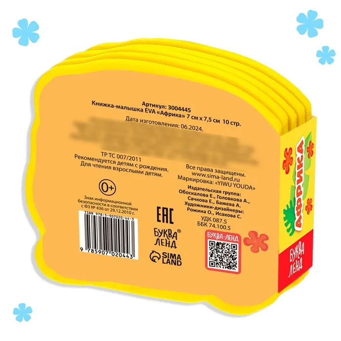 Мягкая книжка-малышка EVA «Африка», 10 стр. — Характеристики