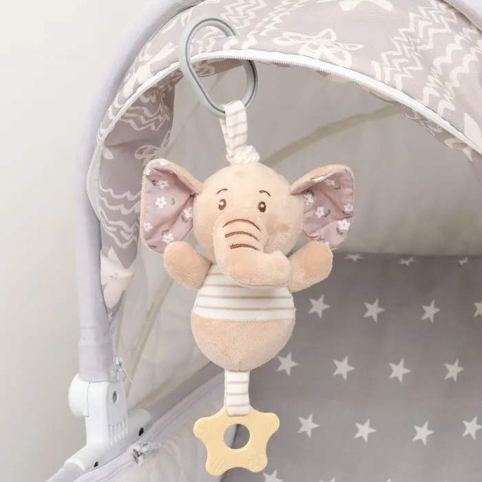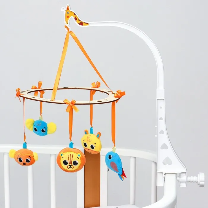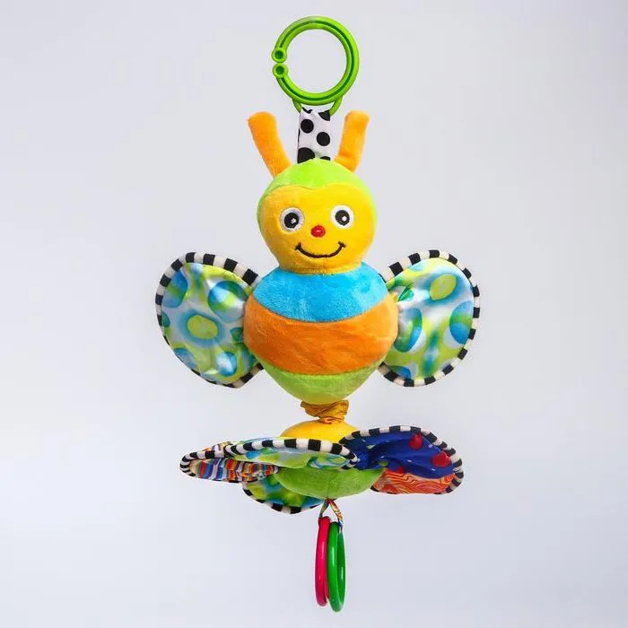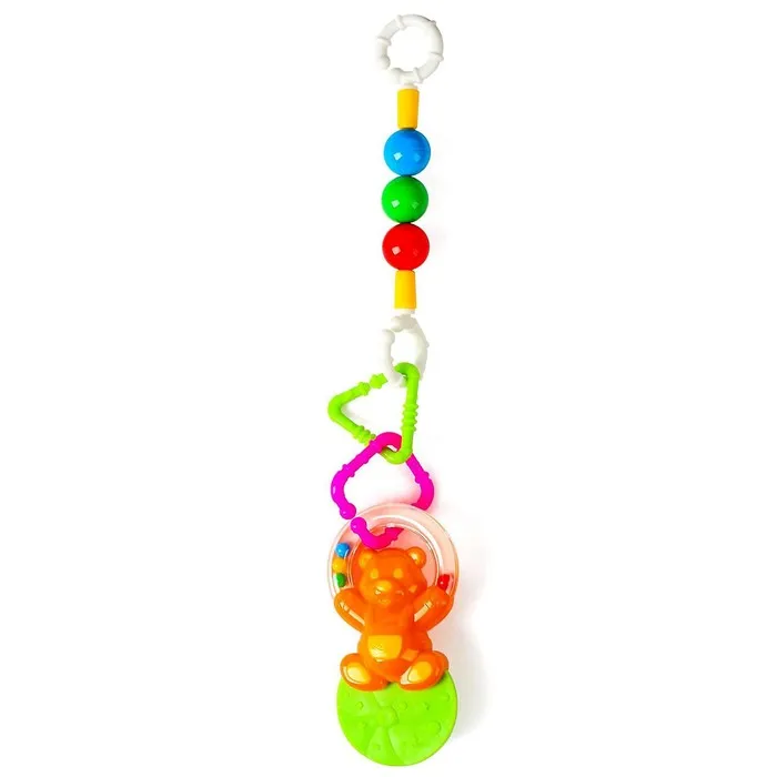 - Игрушка легко крепится на коляску, кроватку или автокресло с помощью удобной подвески.