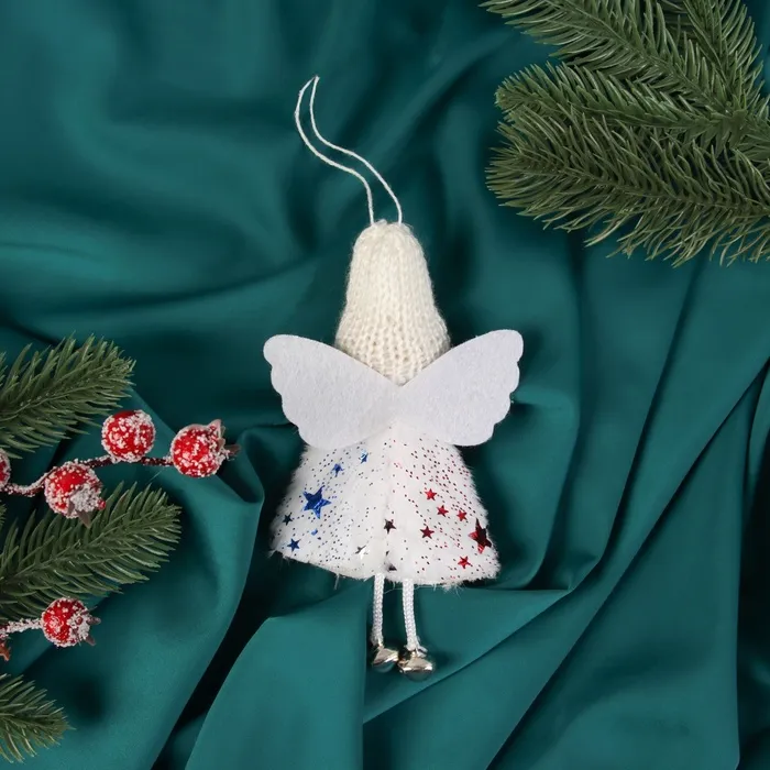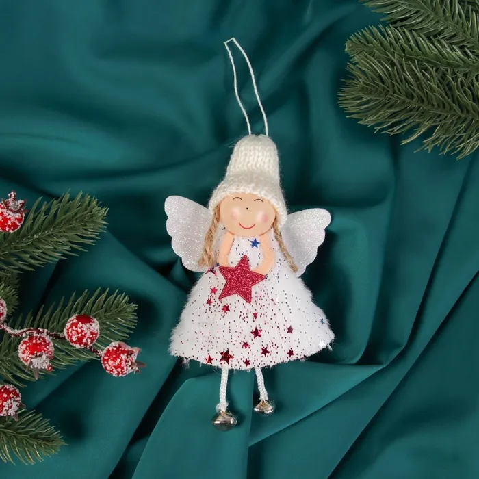 Мягкая текстильная подвеска в форме ангела с нежным бело-розовым оттенком и звездой создаёт атмосферу спокойствия и уюта в классическом и скандинавском интерьере. Компактный размер и лёгкий материал делают её удобным украшением для новогодней ёлки или праздничного декора.