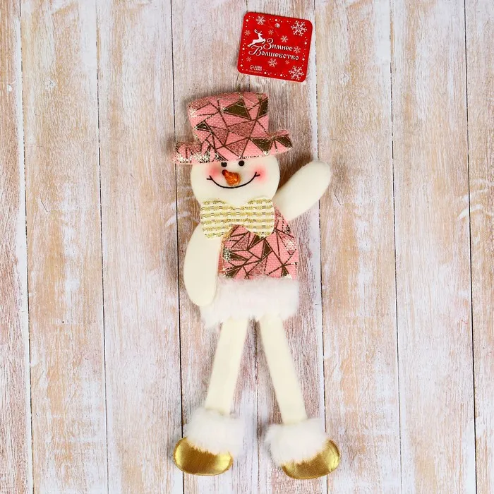 Мягкая подвеска Снеговик — украшение, которое добавляет нежности в праздничный декор. Его розовый цвет с блестящими деталями создаёт атмосферу тепла и сказки. Эта подвеска подходит для тех, кто ценит уютные элементы на ёлке, напоминая о зимних прогулках и семейных вечерах.