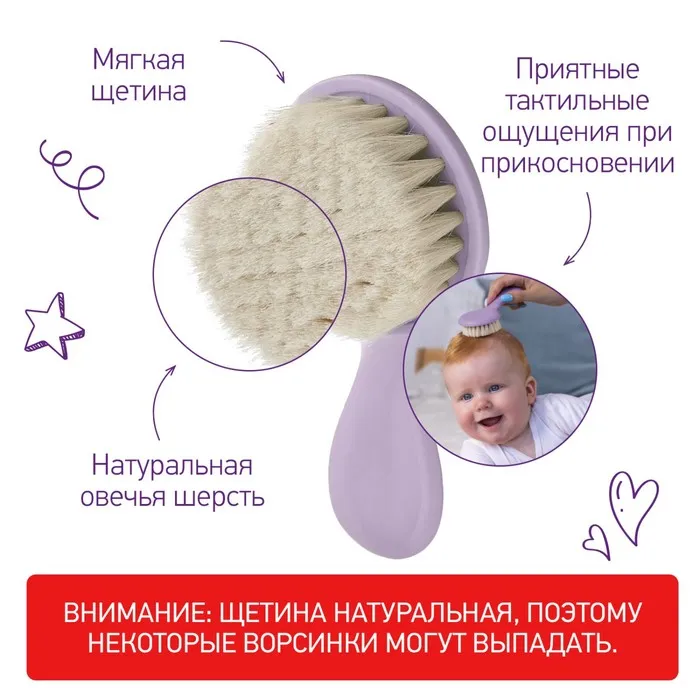 Мягкая расческа-щетка и гребешок с ворсом из овечьей шерсти, цвет лавандовый — Характеристики