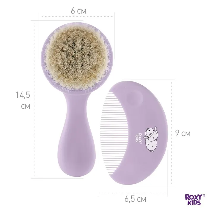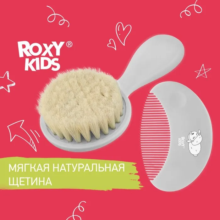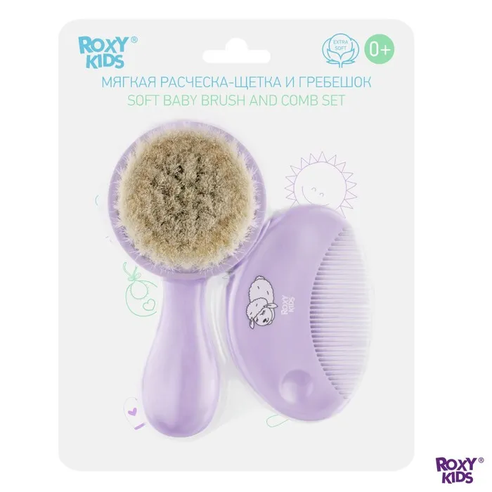 Расческа-щетка с мягким ворсом из натуральной овечьей шерсти и удобный гребешок ROXY-KIDS предназначены для малышей и новорожденных. Мягкая пушистая щетка имеет удобную эргономичную ручку, улучшает кровообращение кожи головы, не царапая её. Нежный массаж расслабляет и успокаивает перед сном, а стимуляция волосяных луковиц ускоряет рост первых волос малыша. Натуральная щетка из овчины позволит пригладить волосики и придать им аккуратный вид. А с помощью гребешка с частыми закругленными зубчиками удобно расчесывать запутавшиеся и скатавшиеся волосы. Набор для расчесывания ROXY-KIDS отличает приятный дизайн, прочность и экологичность материалов. Гребешок и расческа-щетка отлично дополняют друг друга, и в дальнейшем с их помощью вы сможете научить ребенка причесываться самостоятельно.
