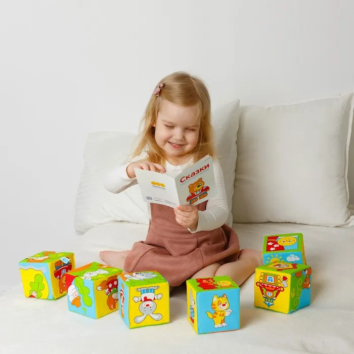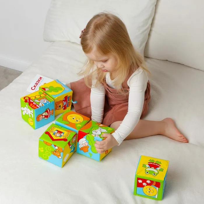 • Каждый кубик выполнен из безопасных материалов: текстиля и поролона, что делает их абсолютно безвредными для детей с рождения.