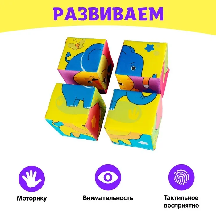 Мягкие кубики «Собери картинку», 4 шт, 8 х 8 см, по методике Монтессори, 1+ — Характеристики