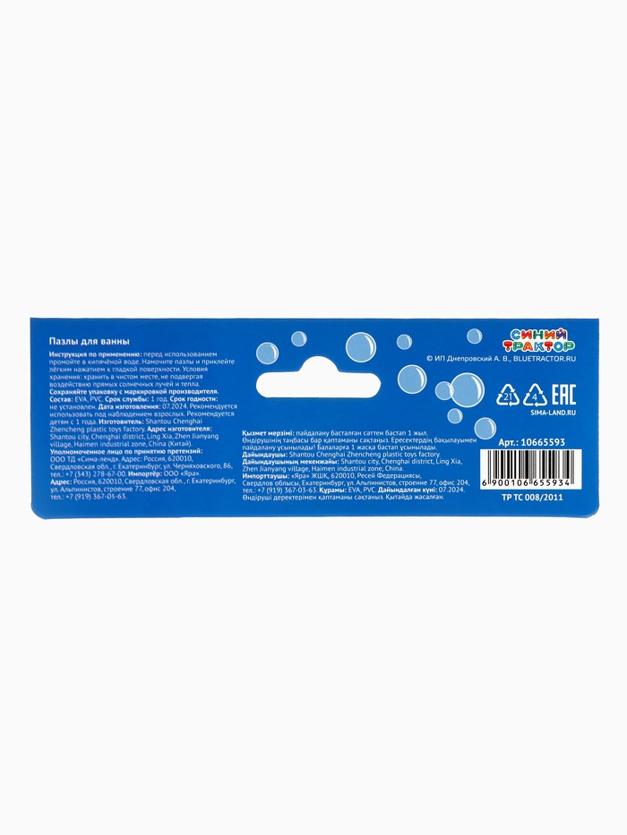Мягкие пазлы для ванны «Животные», Синий трактор — Характеристики