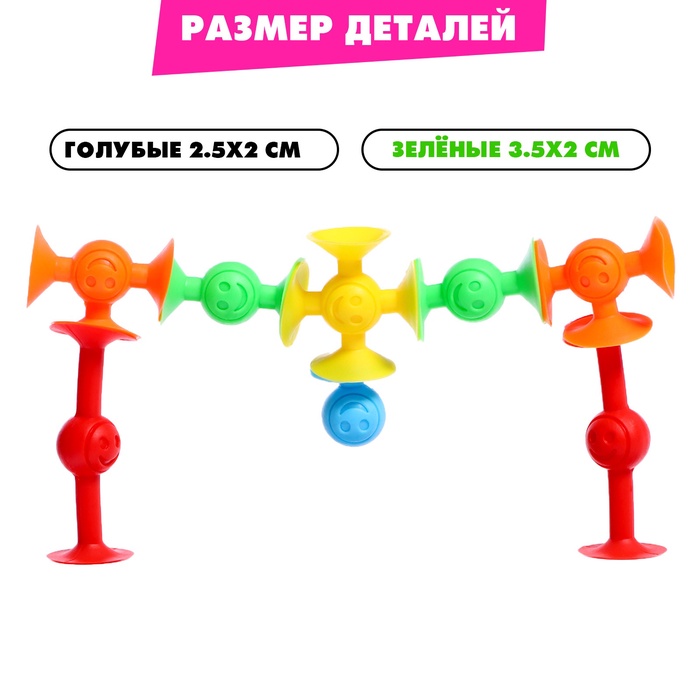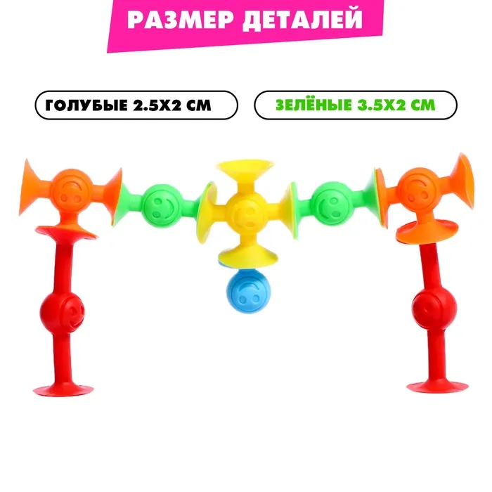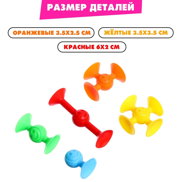 Мягкий конструктор детский «Весёлые присоски», 14 деталей — Характеристики