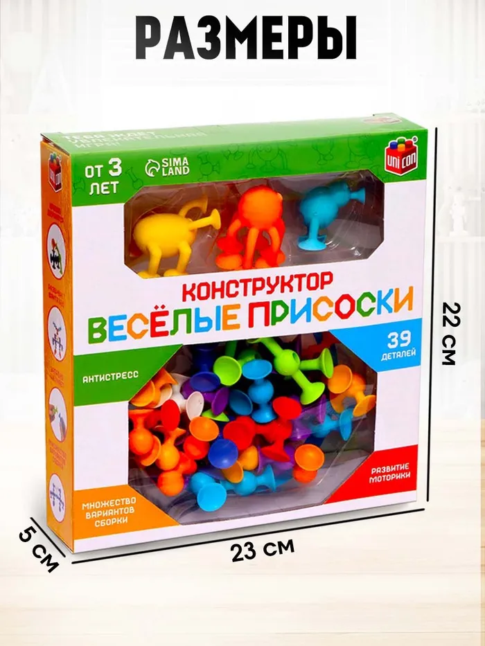 Мягкий конструктор детский «Весёлые присоски», 39 деталей — Характеристики