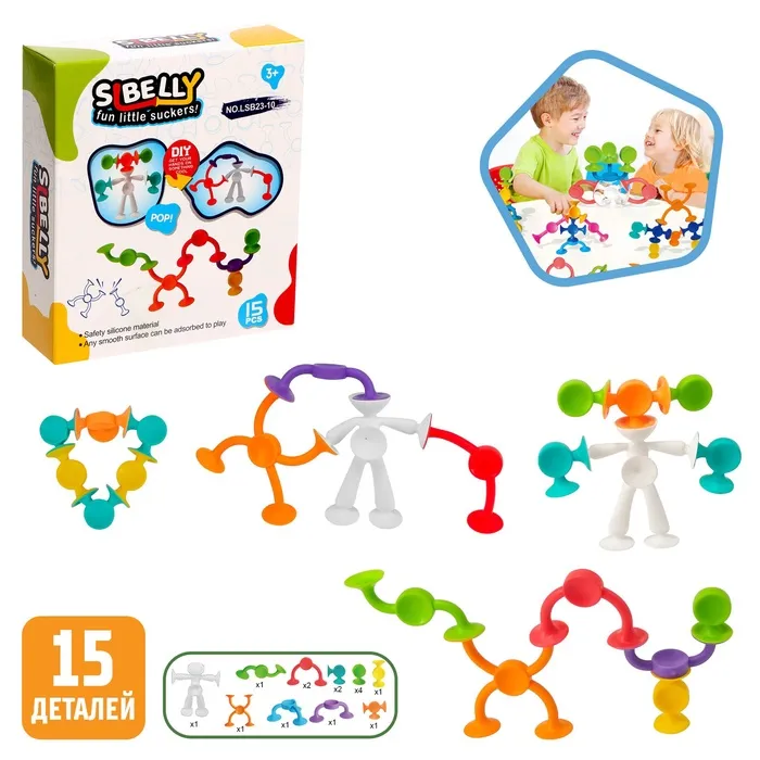 Идеальный подарок для малышей: Набор «Забавные присоски» подойдет для детей от 3 лет. Это отличный способ познакомить ребенка с миром конструирования в безопасной и увлекательной форме. Подарите малышу радость творчества и игры!