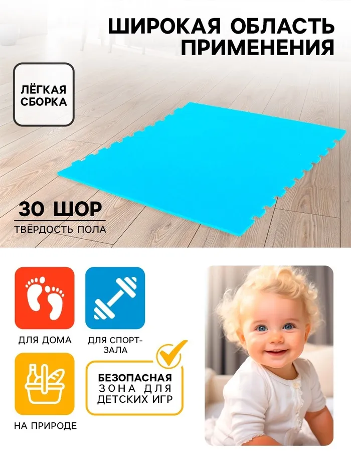 Мягкий пол «Голубые соты» — это практичный и безопасный элемент для детской комнаты или игровой зоны. Его яркий дизайн и удобный размер делают его идеальным решением для создания комфортного пространства. Изготовленный из материала EVA, этот коврик сочетает в себе мягкость, прочность и экологичность.