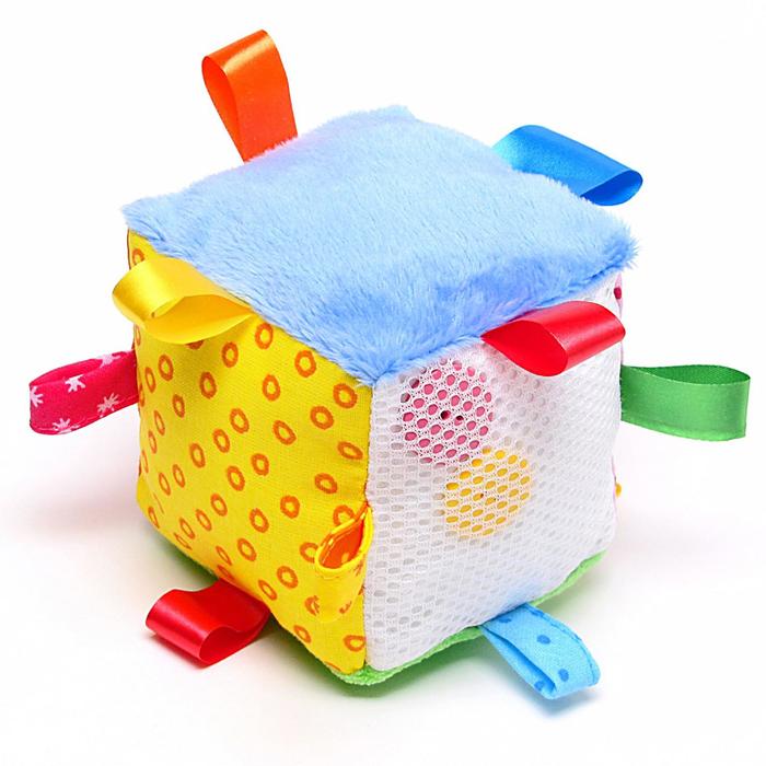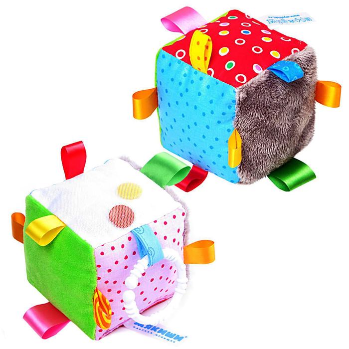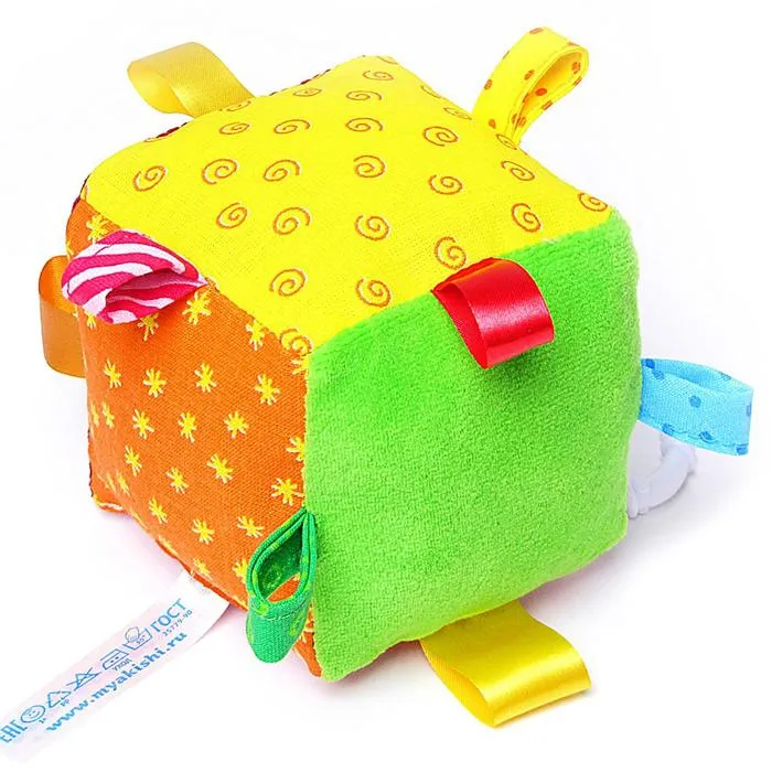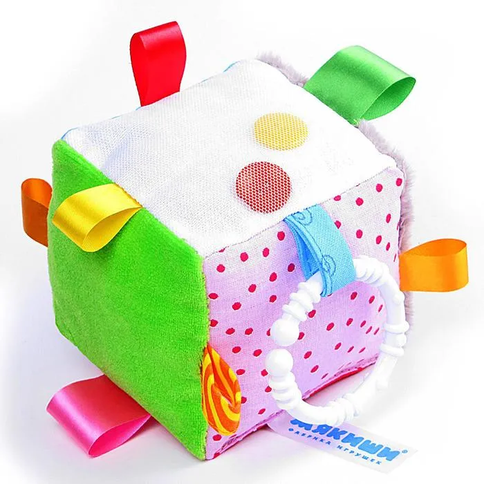 Кубик будет способствовать развитию у малыша воображения, мелкой моторики, цветового и тактильного восприятия. Яркий кубик выполнен в виде забавной мордашки с пришивными элементами.