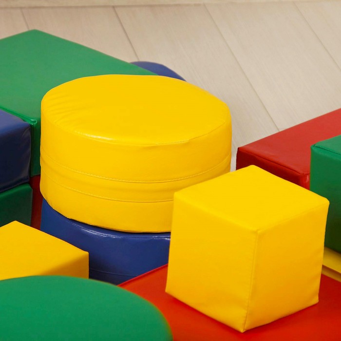 По желанию фантазёра мягкие кубы можно сложить в виде летательного аппарата, создать из них полосу препятствий, превратить в домик или машину.