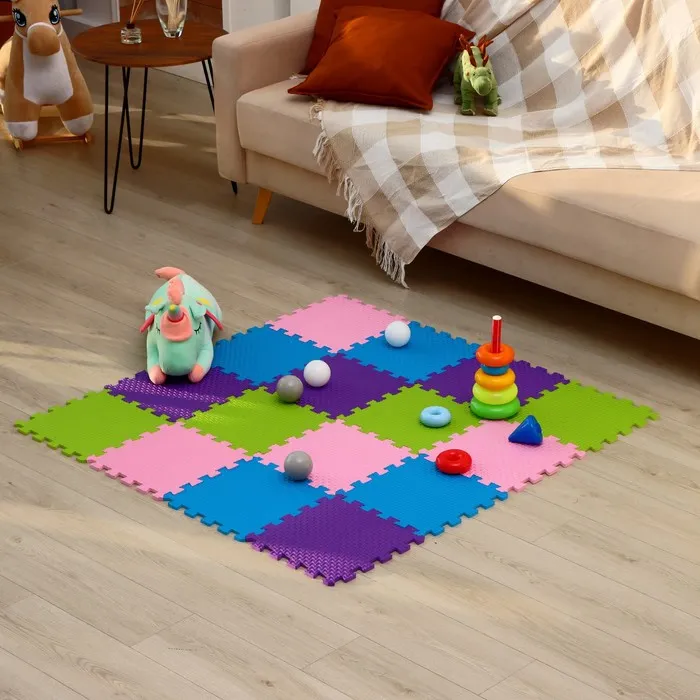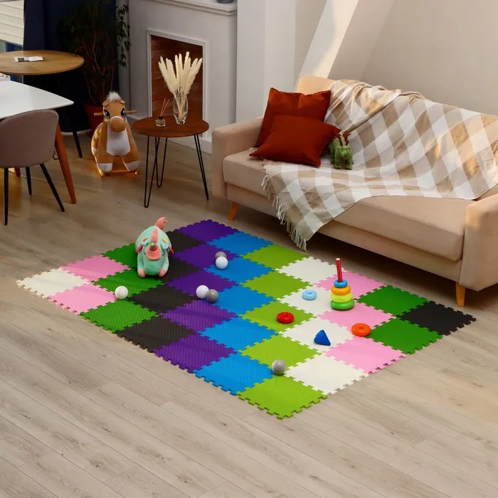 Мягкий пол в виде пазла — это практичное решение для детской комнаты. Такое покрытие станет безопасным и комфортным для детей. Элементы пазла изготовлены из лёгкого и прочного материала — EVA.