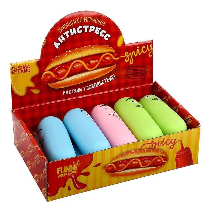 Мялка антистресс тянучка «Сосиска», с песком, в шоубоксе, МИКС — Характеристики