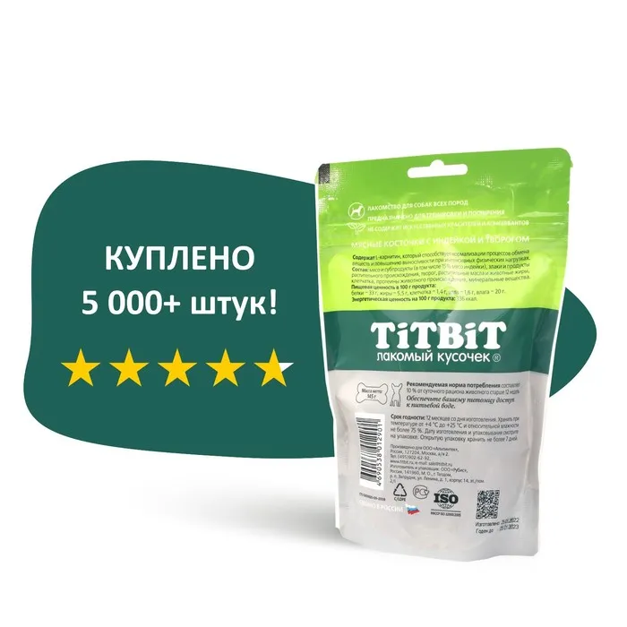 Мясные косточки с индейкой и творогом содержат L-карнитин, который способствует нормализации процессов обмена веществ и повышению выносливости при интенсивных физических нагрузках. Идеально подходит в качестве поощрения при обучении, дрессировке или просто за хорошее поведение.