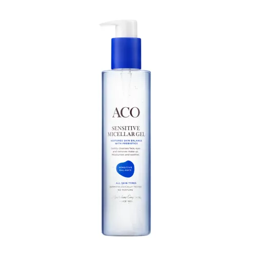 Мицеллярный очищающий гель ACO Sensitive Balance с пребиотиками и гиалуроновой кислотой.