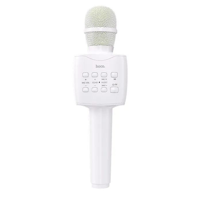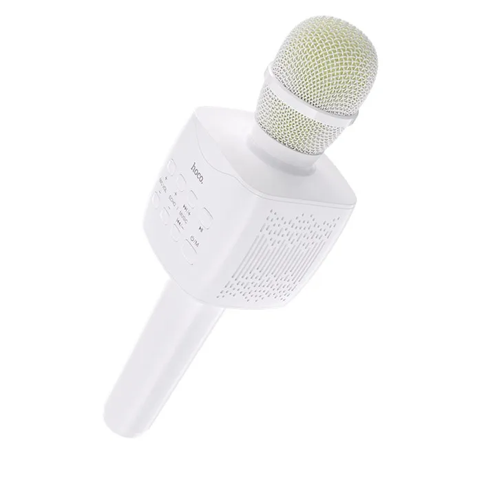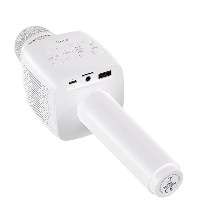 HOCO BK5 — беспроводной караоке-микрофон. Предназначен для одновременного воспроизведения музыки и голоса исполнителя (функция караоке), может использоваться как портативная колонка. Позволяет одновременно петь и воспроизводить песни или фонограммы. Возможно воспроизведение музыки через карту microSD или USB-флешку.