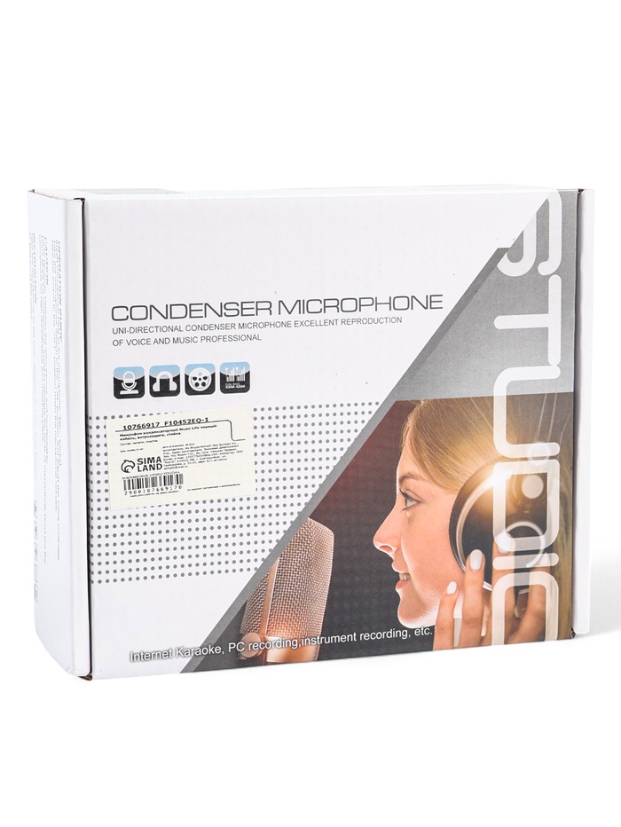 Микрофон конденсаторный Music Life черный: кабель, ветрозащита, стойка — Характеристики