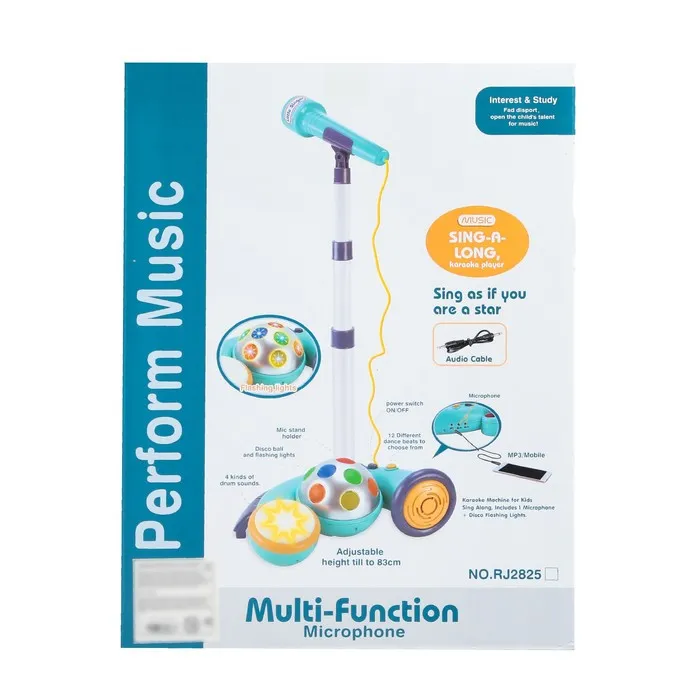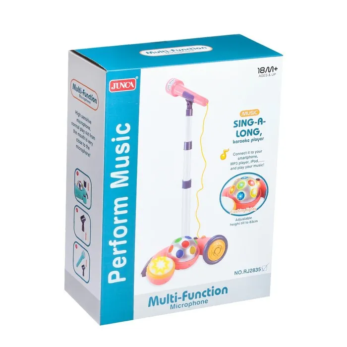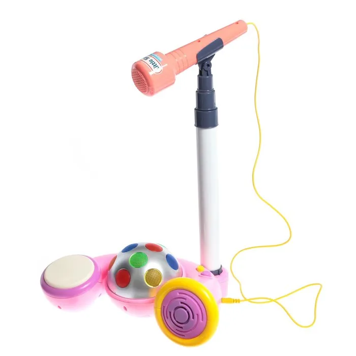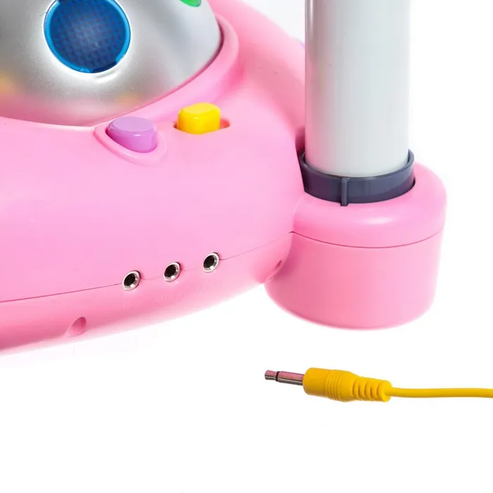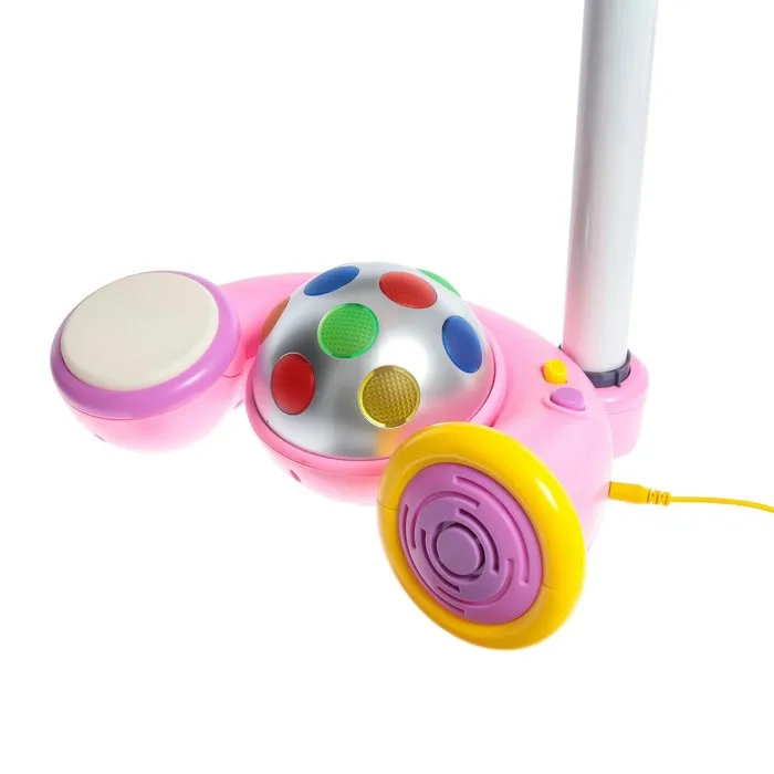 Микрофон на стойке поможет малышу петь свои любимые песни. К изделию можно подключить смартфон, MP3-плеер, iPod. Громкость звука регулируется через подключённое устройство. Микрофон имеет функцию усиления голоса.