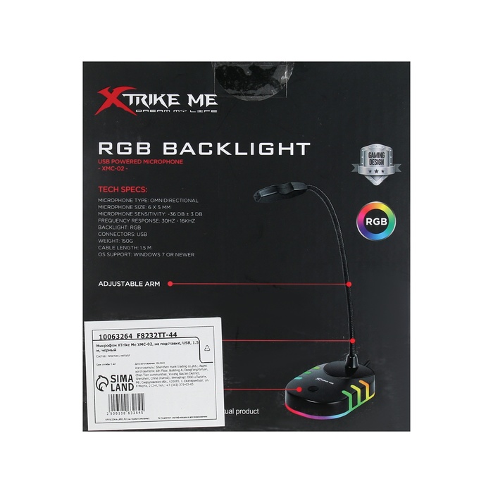 Микрофон XTrike Me XMC-02, на подставке, USB, 1.5 м, чёрный — Характеристики