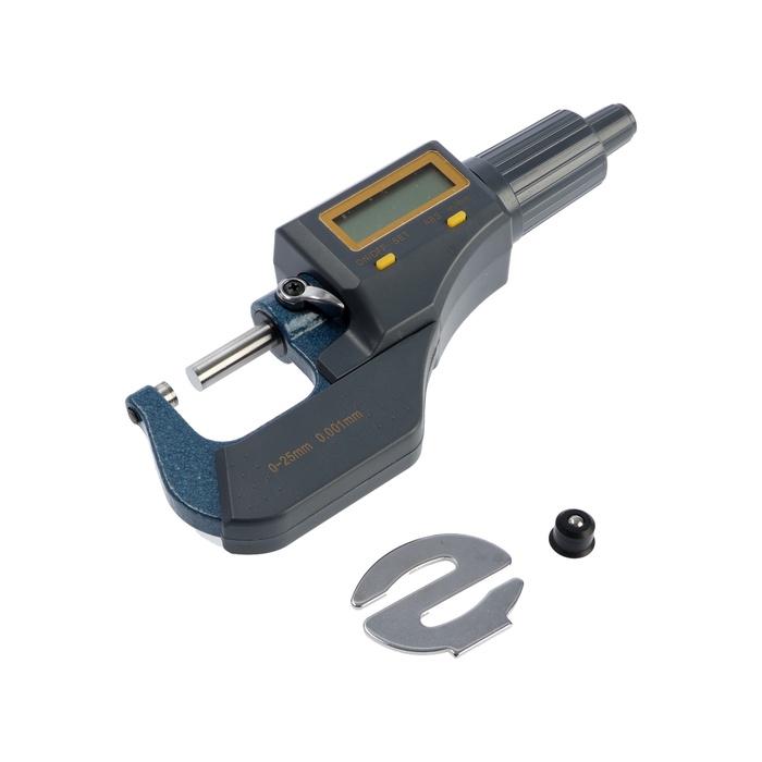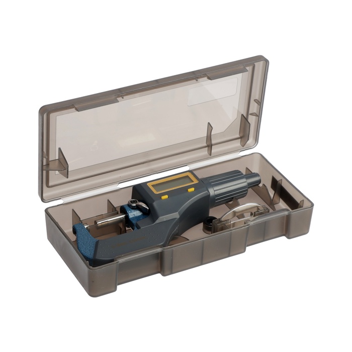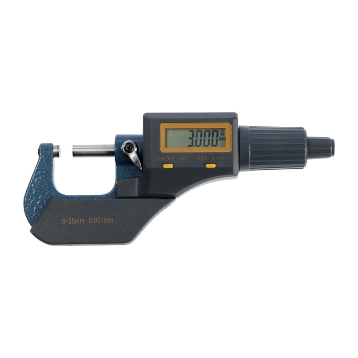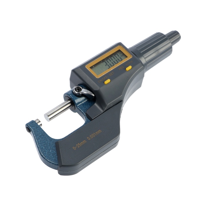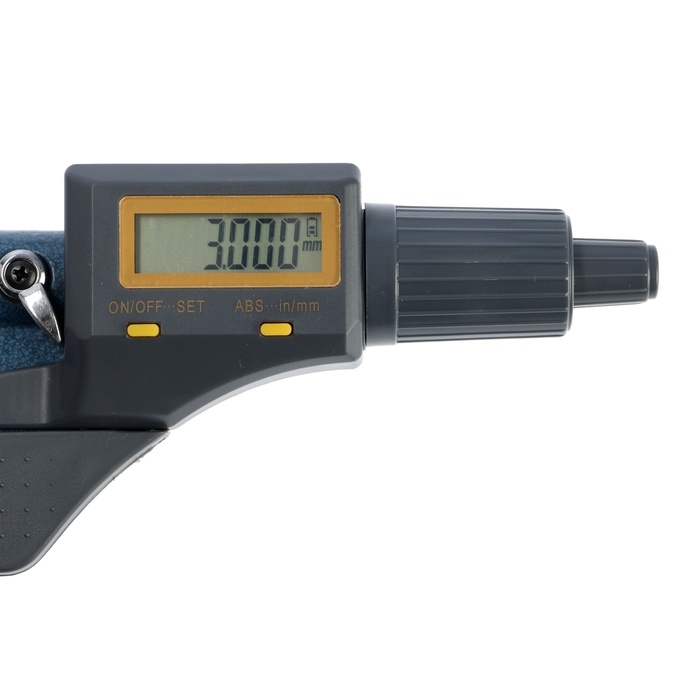 Микрометр используют для контроля размеров валов, толщины листового металла и прецизионных деталей. Электронный дисплей упрощает считывание показаний.