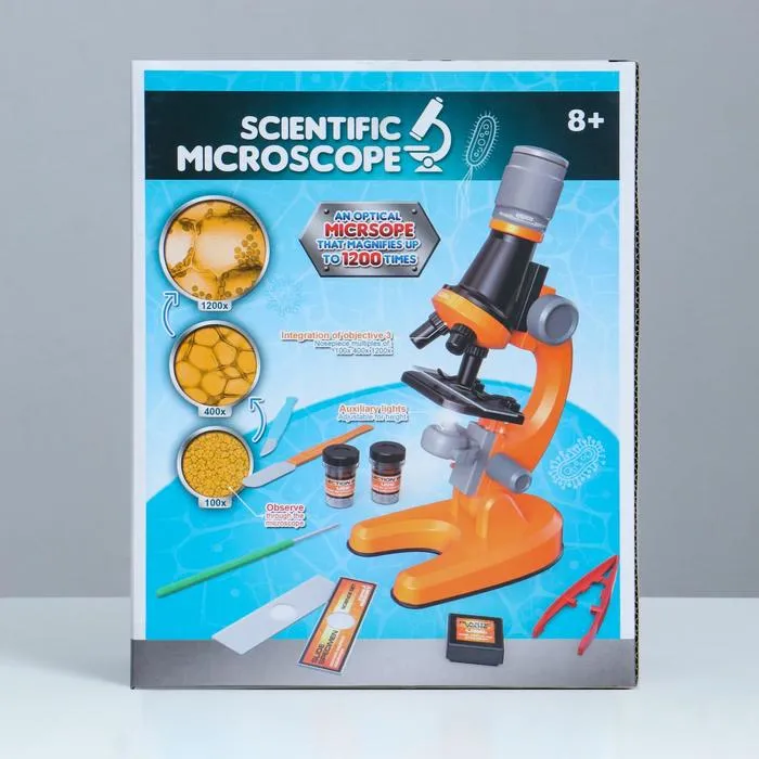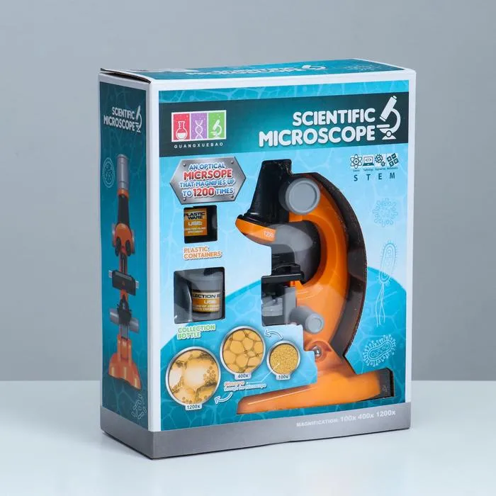 Исследуйте невидимый мир глазами юного ученого! Этот детский микроскоп с увеличением до 1200x создан специально для первых шагов в науке. Он сочетает мощный оптический потенциал, удобство использования и яркий дизайн — идеальный инструмент для любознательных детей от 5 лет.