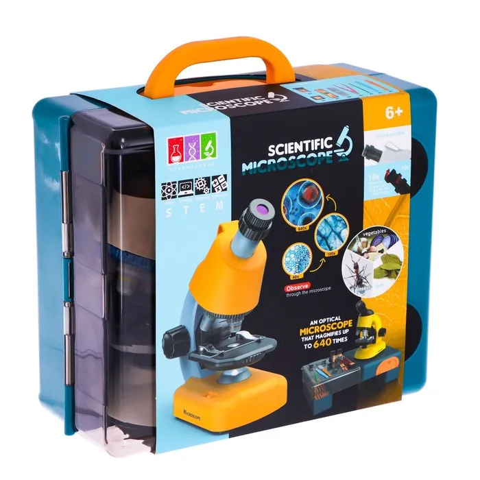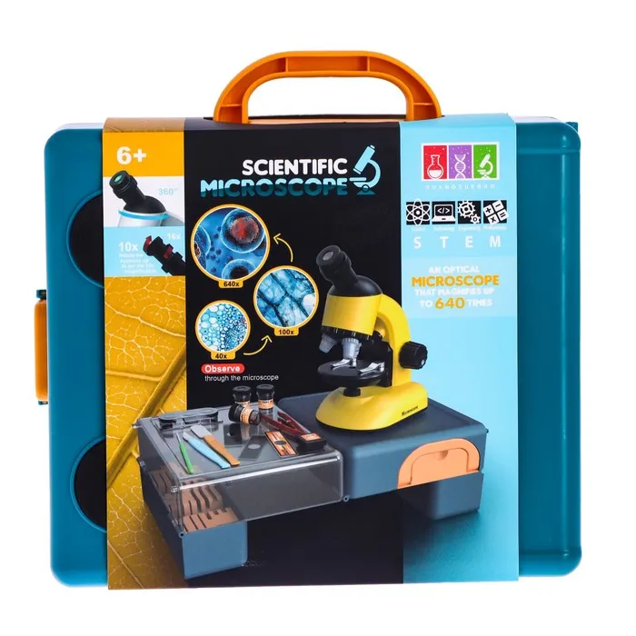 Микроскоп детский «Набор биолога в чемодане» кратность х40, х100, х640, подсветка, цвет белый — Характеристики