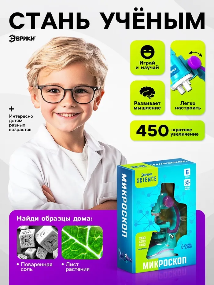 Малыш интересуется окружающим миром? Ответить на вопросы ребёнка поможет компактный детский микроскоп серии «Эврики».