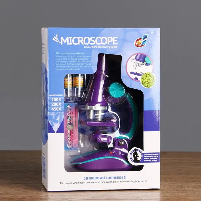Микроскоп "Юный исследователь", кратность увеличения 450х, 200х, 100х, с подсветкой, микс 1 — Характеристики