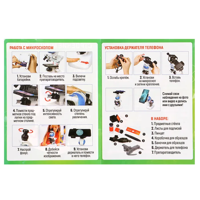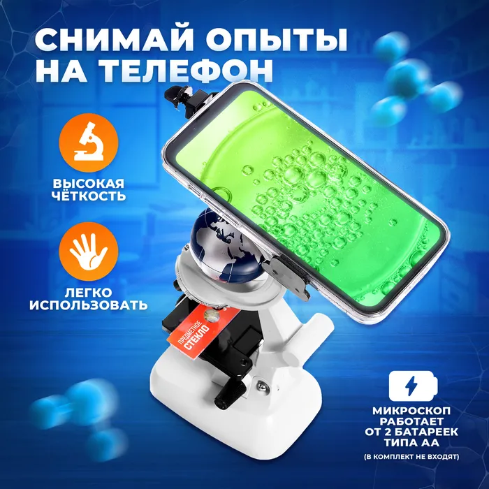 Микроскоп, с планетой, держатель для телефона, подсветка, увеличение x100, x400, x1200 — Характеристики