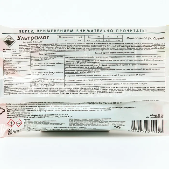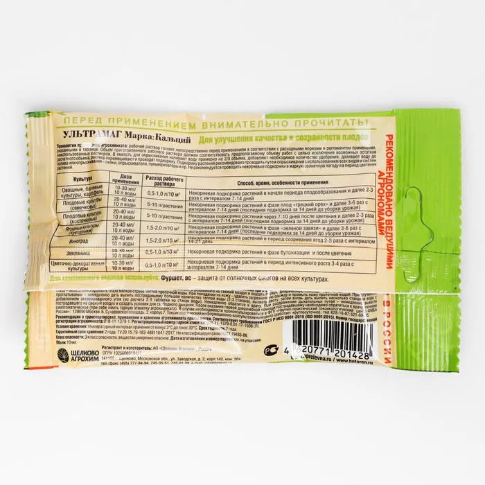 Концентрированное удобрение с высоким содержанием кальция для листовых и корневых подкормок сельскохозяйственных культур