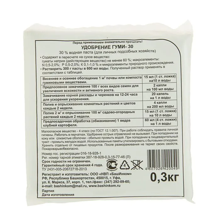 Микроудобрение Гуми-30 универсальное, 300гр — Характеристики