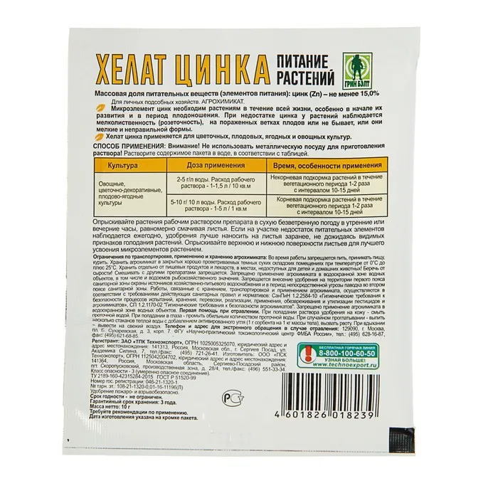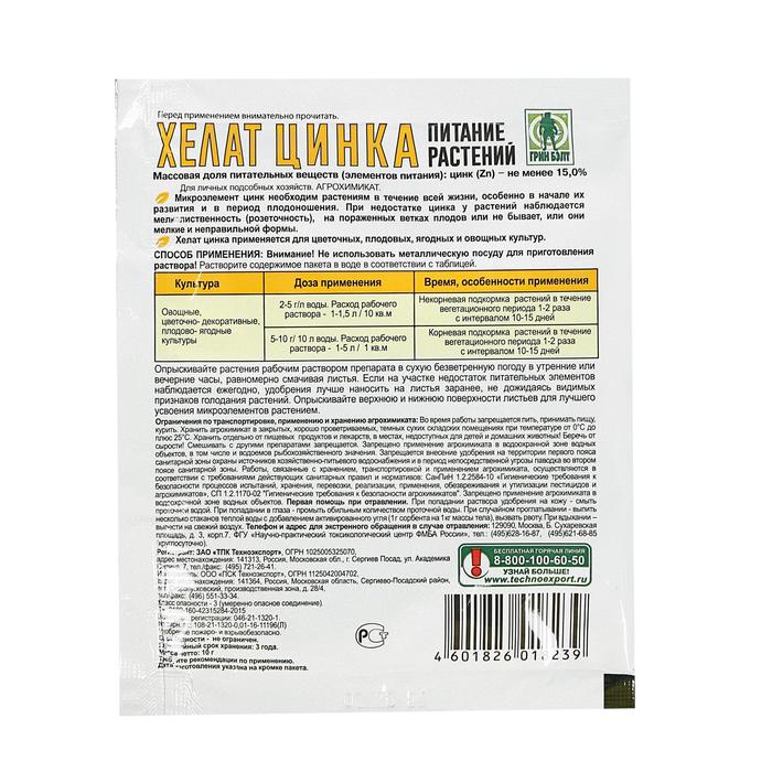 Микроудобрения Хелат цинка, 10 г — Характеристики