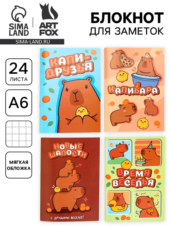 МИКС Блокнотов А6, 24 листа, в клетку «Капибары» — Характеристики
