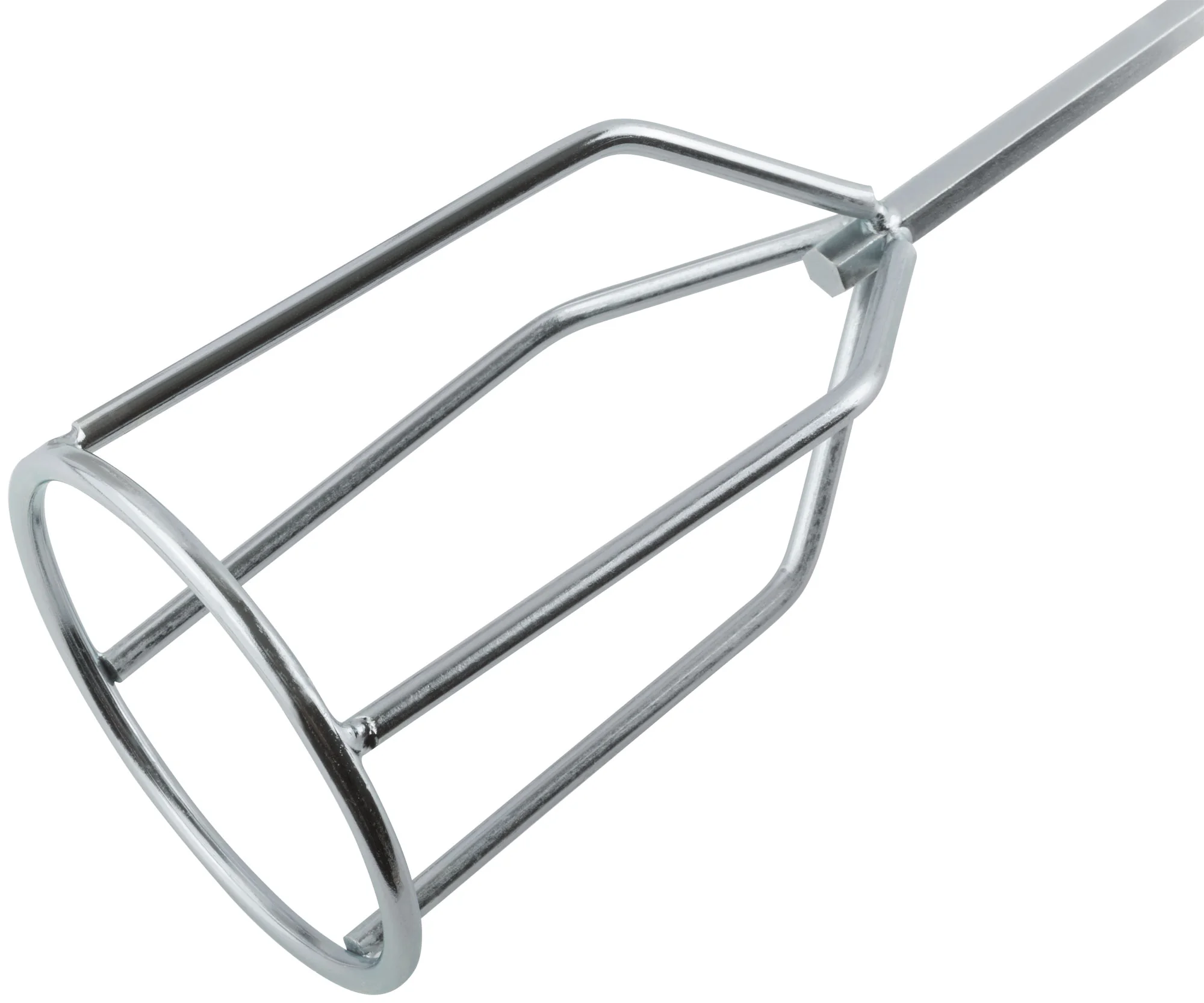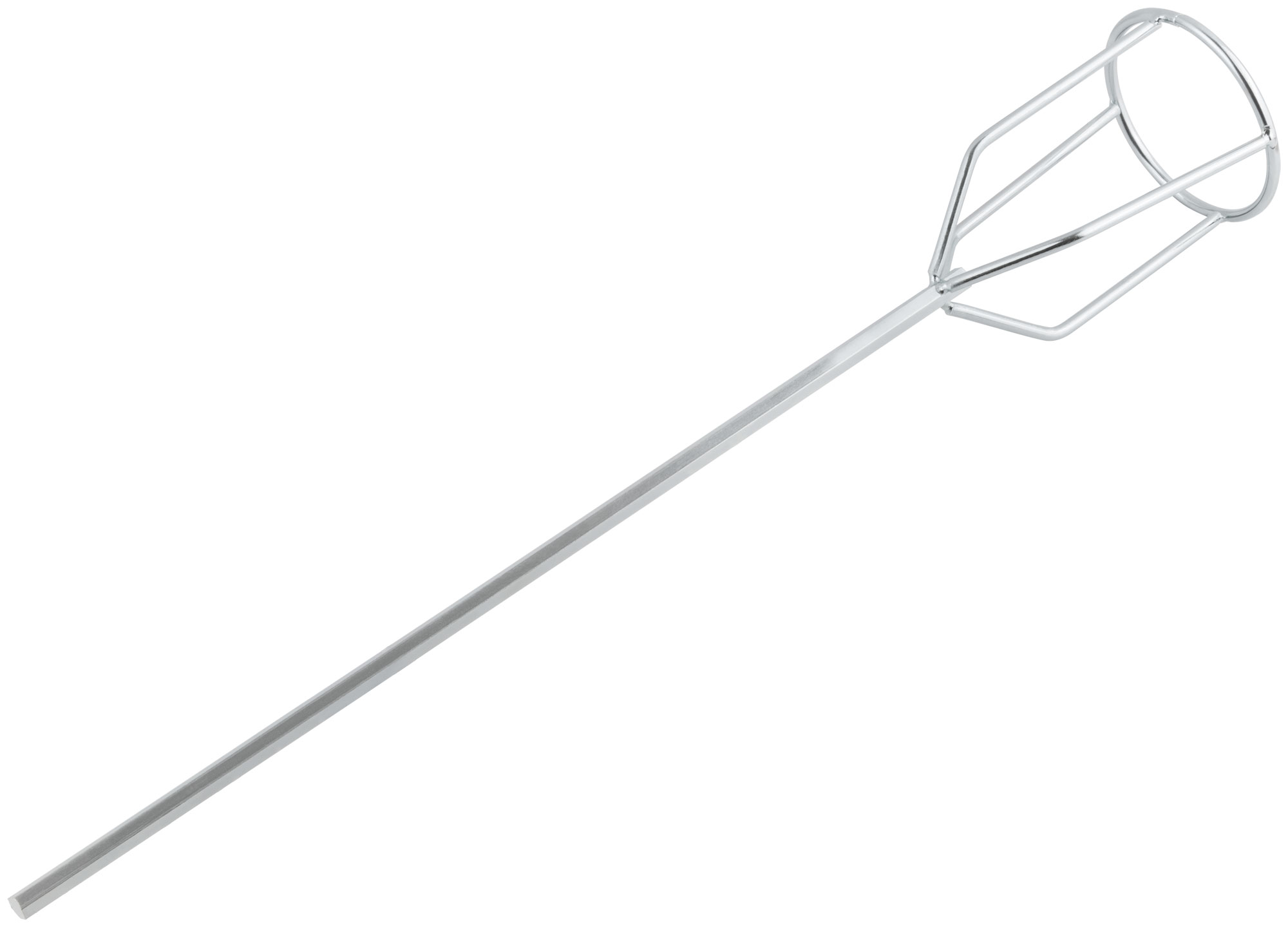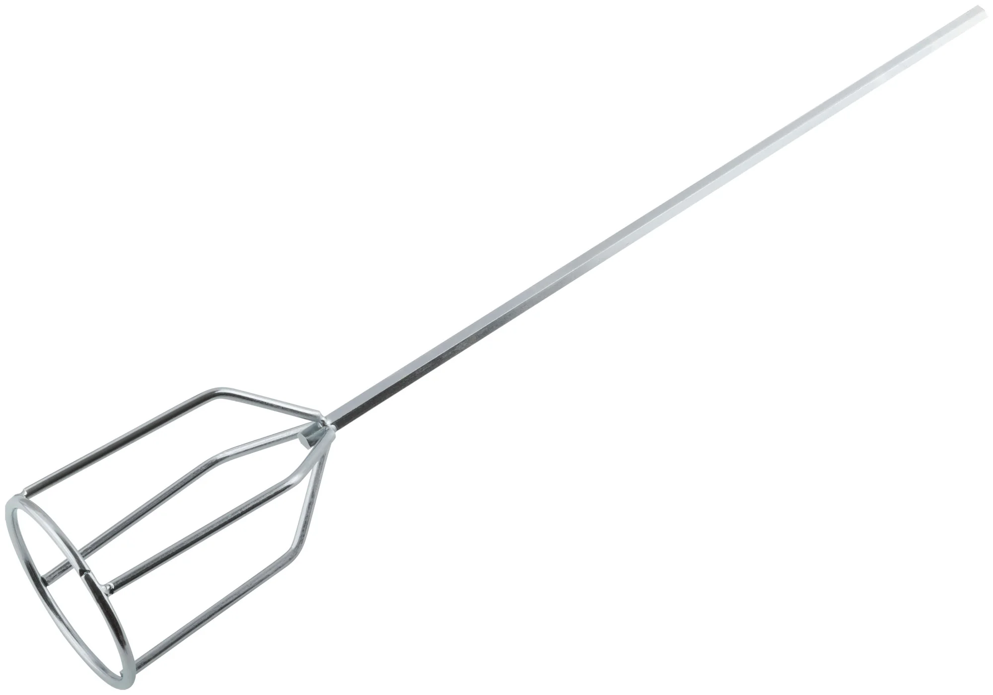 Миксер изготовлен из инструментальной стали с цинковым покрытием, что обеспечивает долговечность и устойчивость к коррозии. Стандартный стержень диаметром 8 мм с шестигранным сечением позволяет легко закрепить его в дреле.