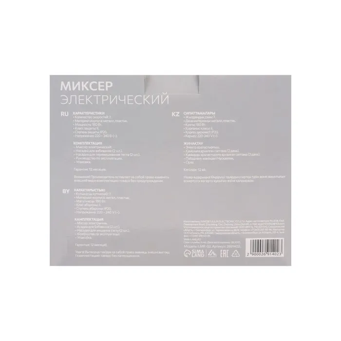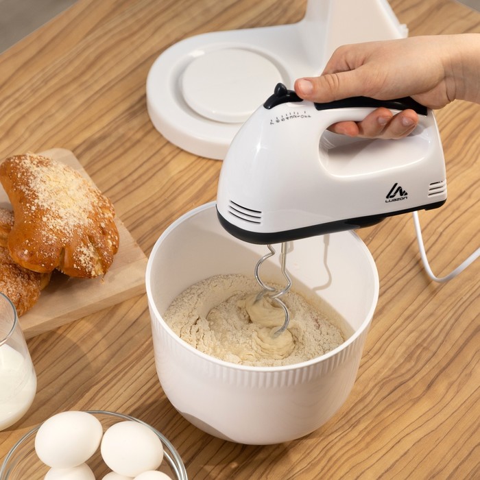 Миксер Luazon LMR-02, ручной, 180 Вт, 7 скоростей, 2 насадки, бело-чёрный — Характеристики