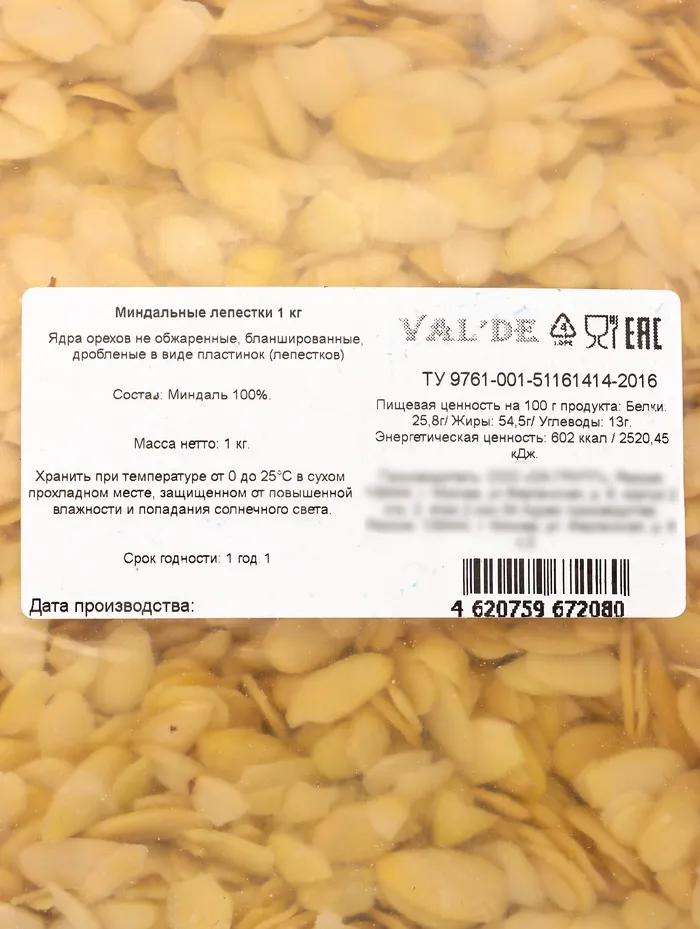Миндальные лепестки СТ VAL'DE 1 кг — Характеристики