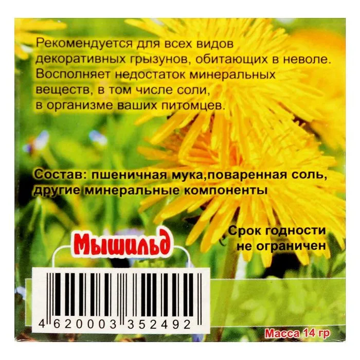 Минеральная подкормка "Солонец" для грызунов сердечко, 14 г — Характеристики
