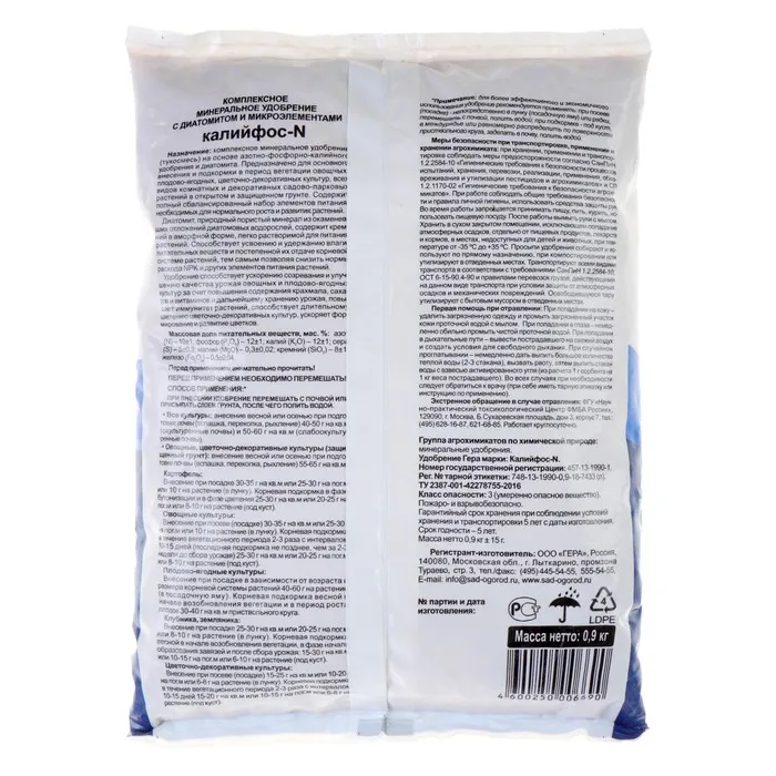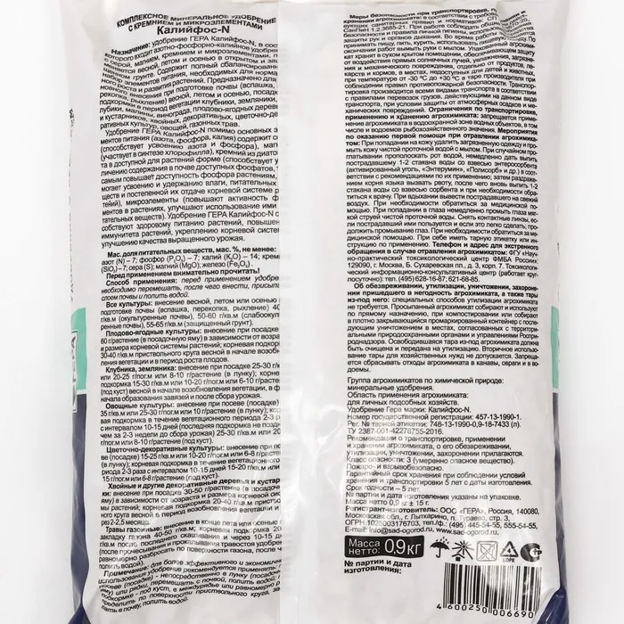 Удобрение способствует ускорению созревания и улучшению качества урожая за счет повышения содержания крахмала, сахаров и витаминов и дальнейшему хранению урожая, а также повышает сопротивляемость растений к внешним неблагоприятным факторам (болезням, насекомым-вредителям, засухе, заморозкам и т.д.).