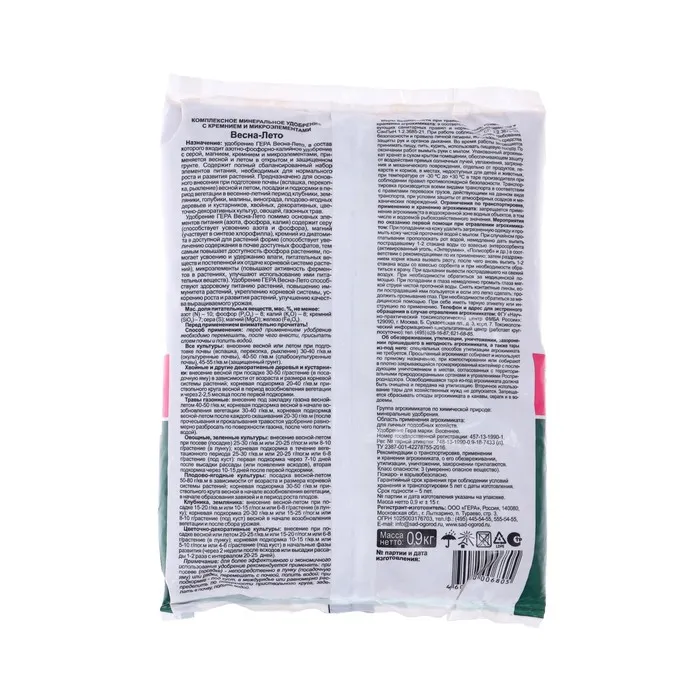 Удобрение, с повышенным содержанием азота, что особенно важно весной и в первой половине лета, обеспечивает рост вегетативной массы и корневой части растений, ускоряет развитие растений, создает основу для будущего урожая, а также повышает сопротивляемость растений к внешним неблагоприятным факторам (болезням, насекомым-вредителям, засухе, заморозкам и т.д.).