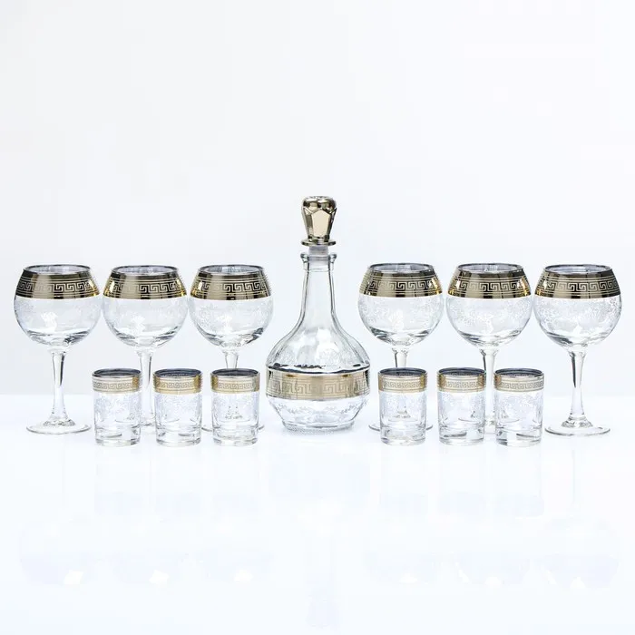 • Вместительность: 6 бокалов и 6 стопок в наборе, а также вместительный графин.