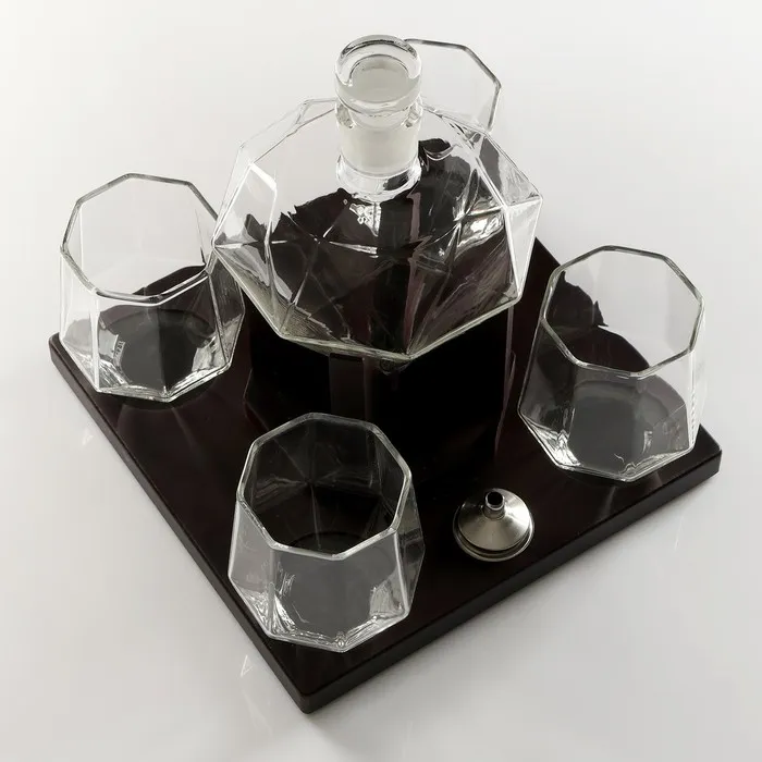 Мини-Бар «Рубин», на подставке, на 3 персоны, штоф - 880 мл, стаканы - 200 мл, 13.5×23×23 см, стекло, дерево — Характеристики