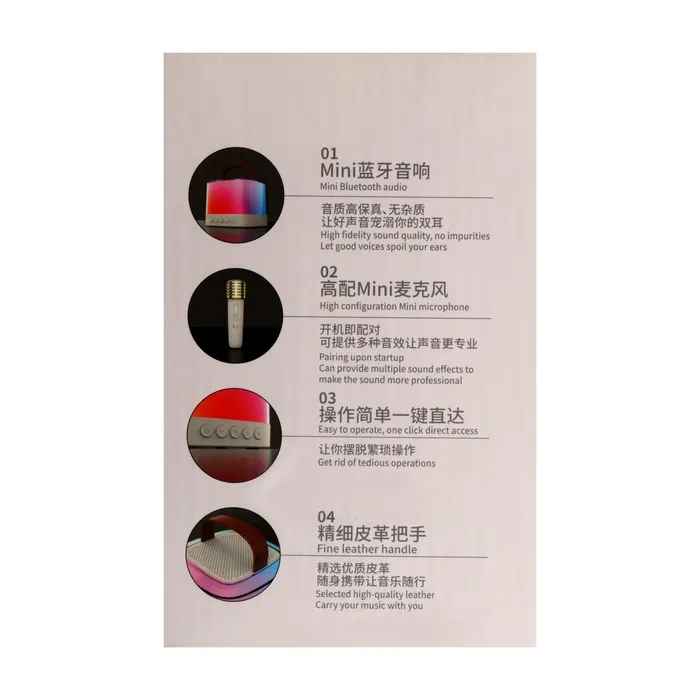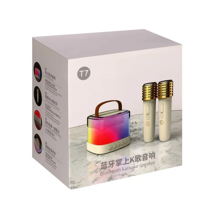 Мини караоке-система T7 — это ваш идеальный спутник для весёлых вечеринок, удобных музыкальных сессий и ярких выступлений. Мощность 5 Вт и встроенная подсветка создают эффектное сочетание звука и света, а компактный бежевый корпус легко впишется в любой интерьер. Эта система подарит вам массу положительных эмоций и позволит почувствовать себя настоящим исполнителем в любое время и в любом месте.