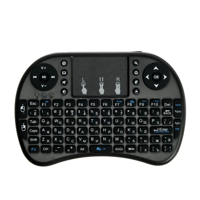 Мини-клавиатура LuazON подойдёт для подключения к телевизору или к телефону. Компактный размер обеспечивает возможность брать клавиатуру с собой в поездку для подключения к ноутбуку. Встроенный тачпад с удобным управлением позволяет полностью отказаться от компьютерной мыши. Касание одного пальца иммитирует нажатие левой кнопки мыши, три пальца являются альтернативой правой кнопки мыши, а два пальца используются для перемотки, вместо колёсика. Двойная раскладка позволяет комфортно печатать текст на русском и английском языке.