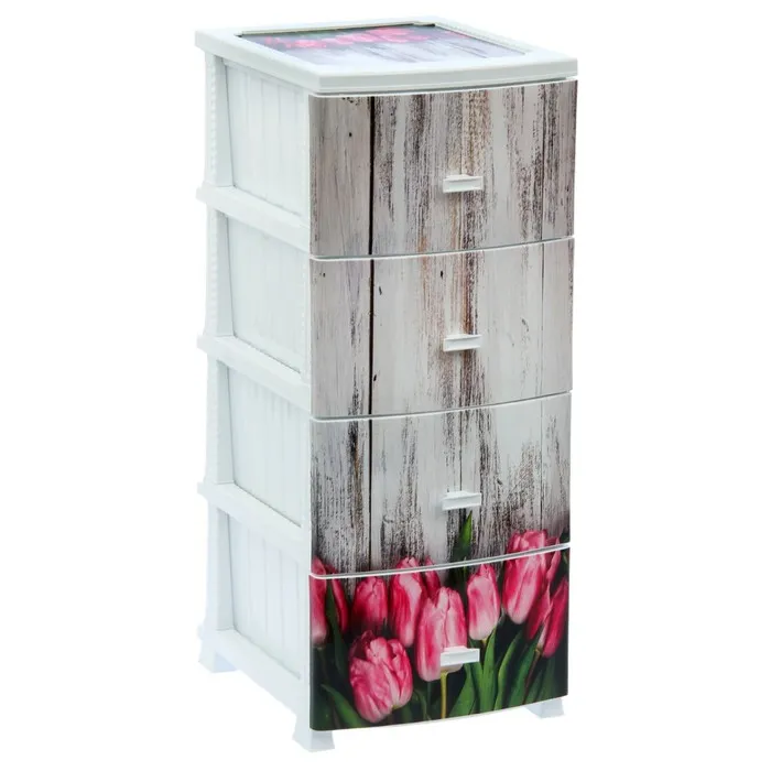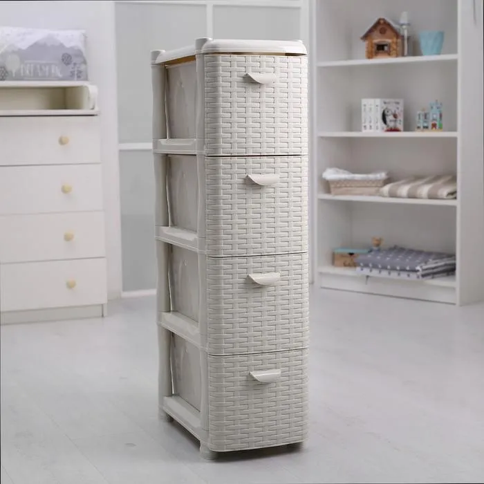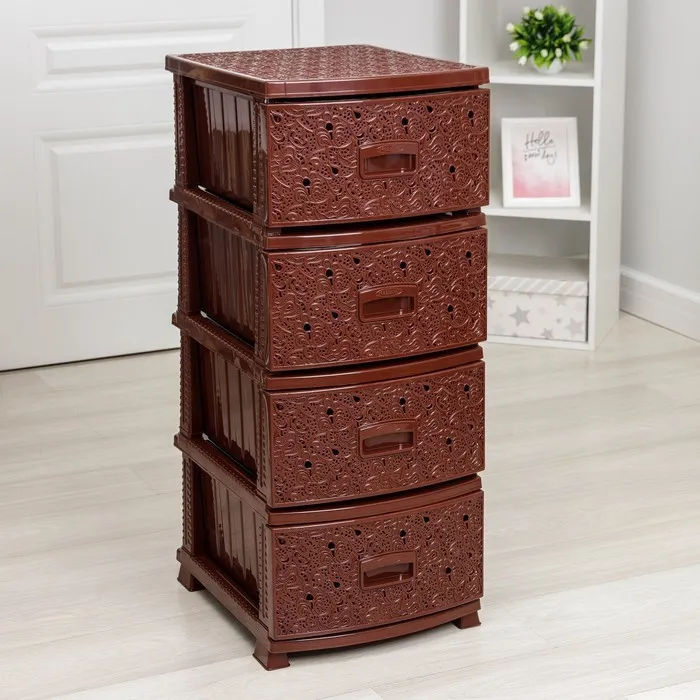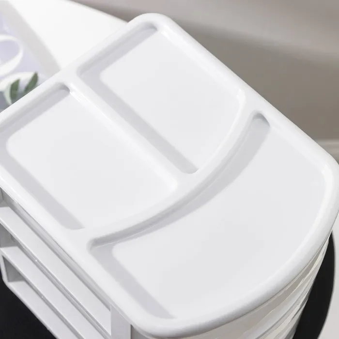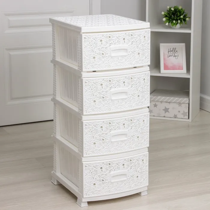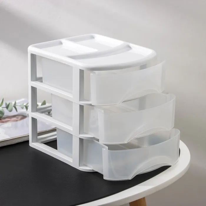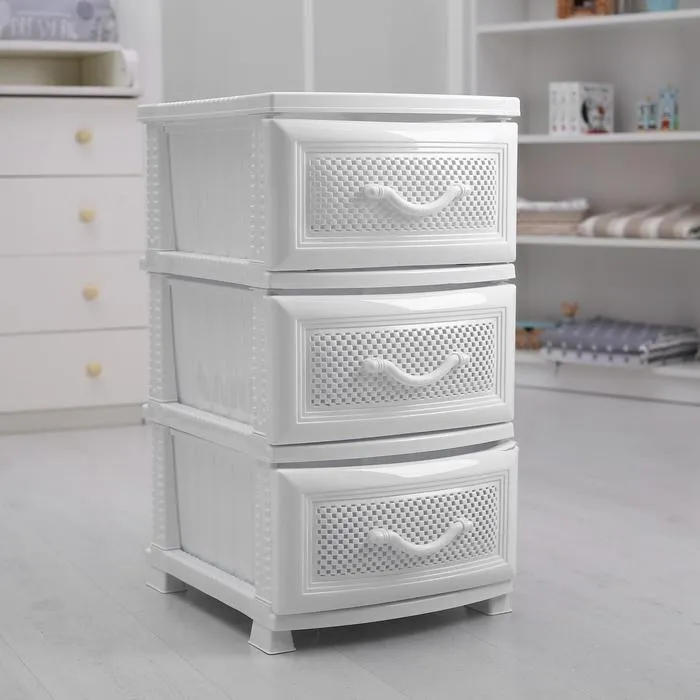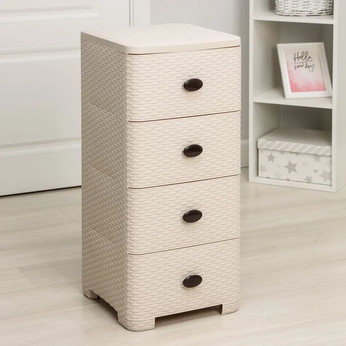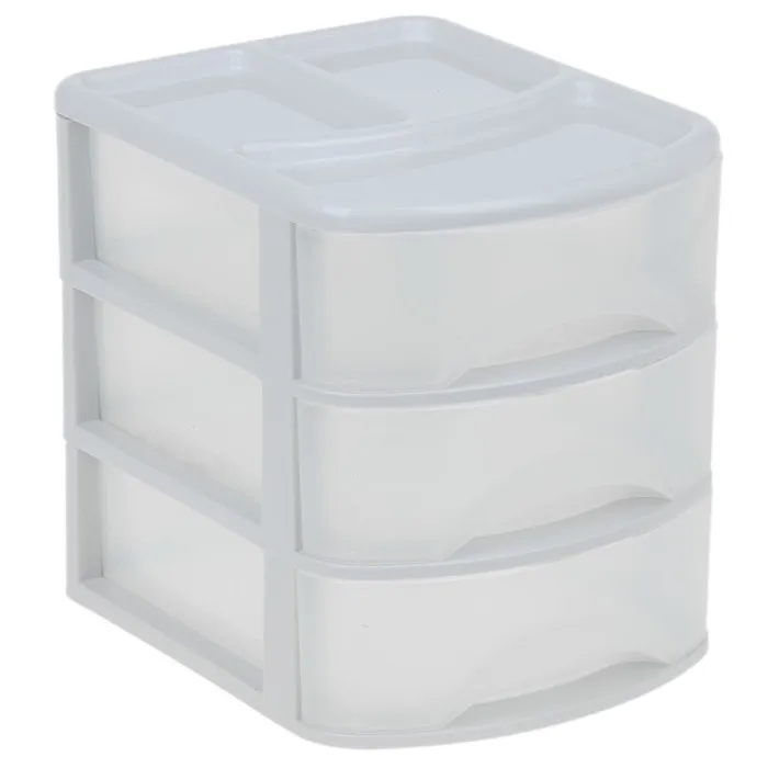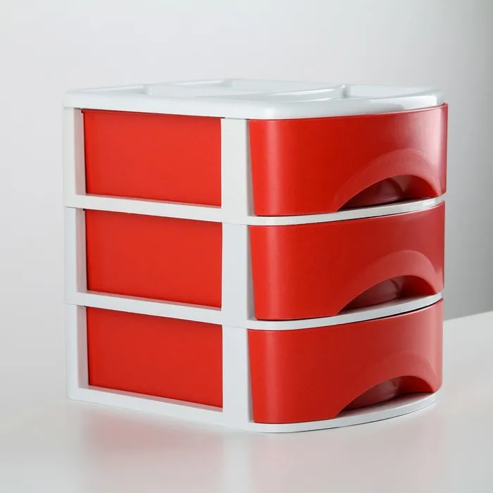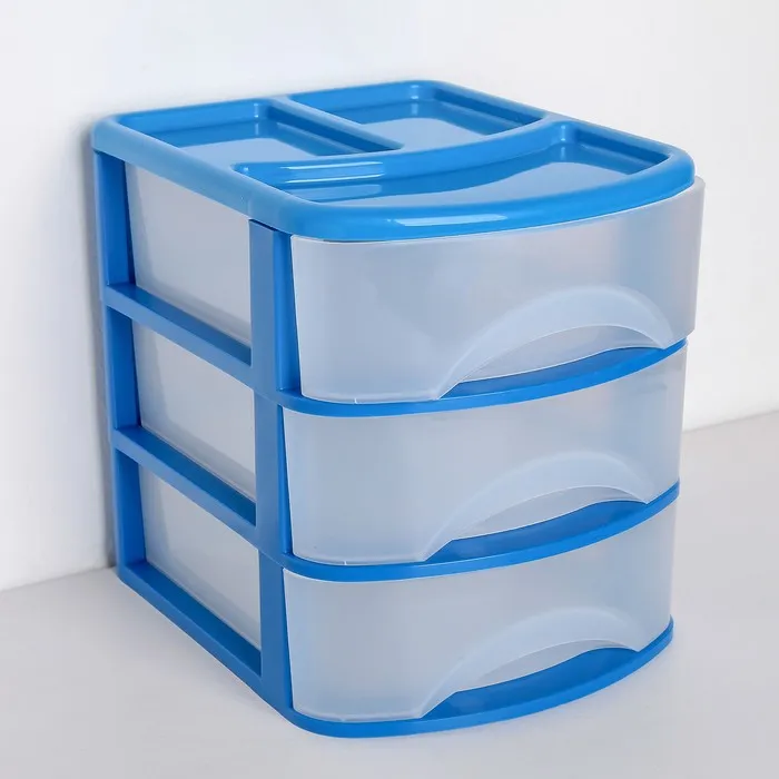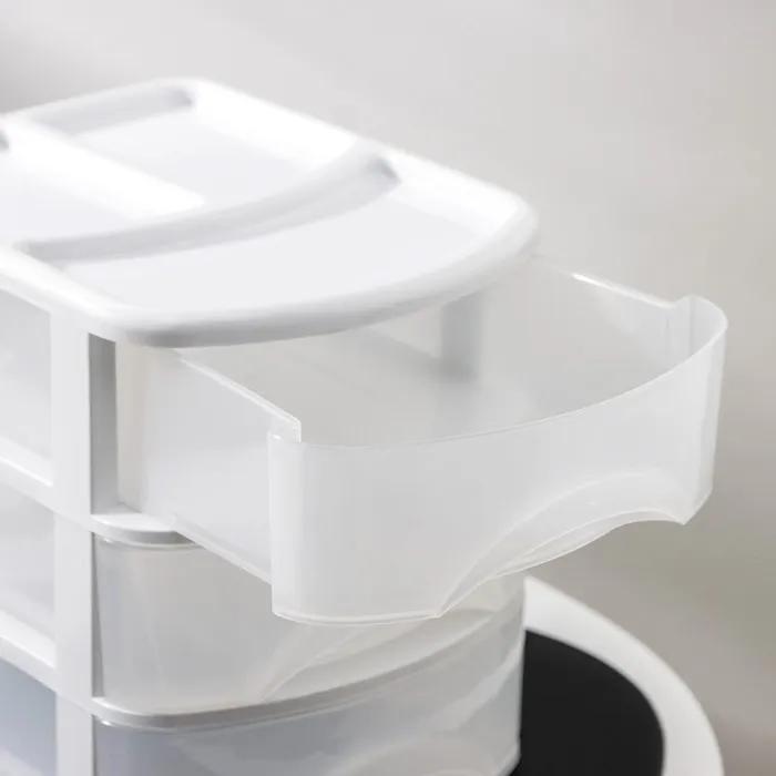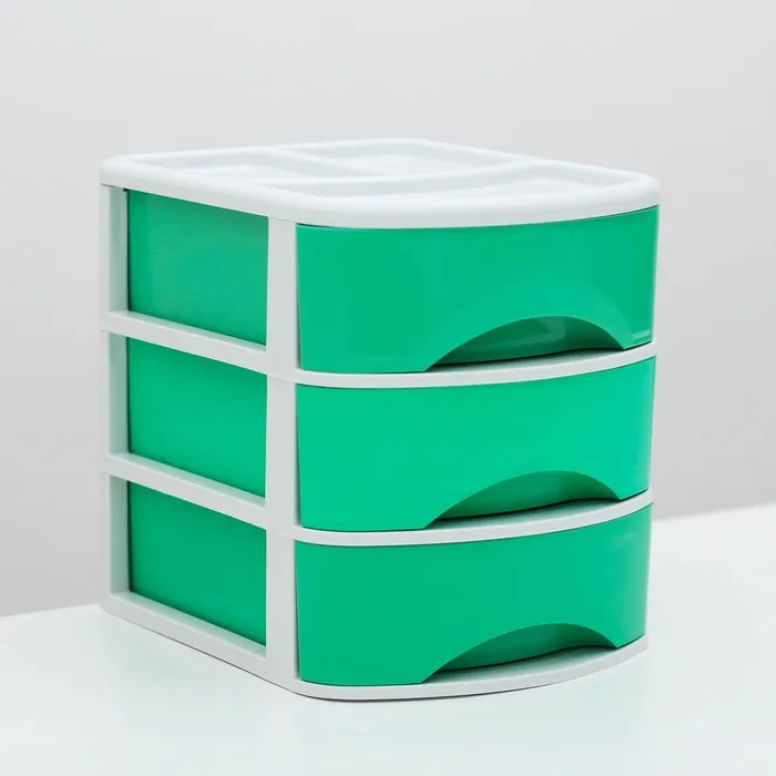 Пластиковый предмет мебели предназначен для хранения мелочей, принадлежностей для шитья, творчества и других аксессуаров. Изделие оснащено выдвижными ящиками с ручками.