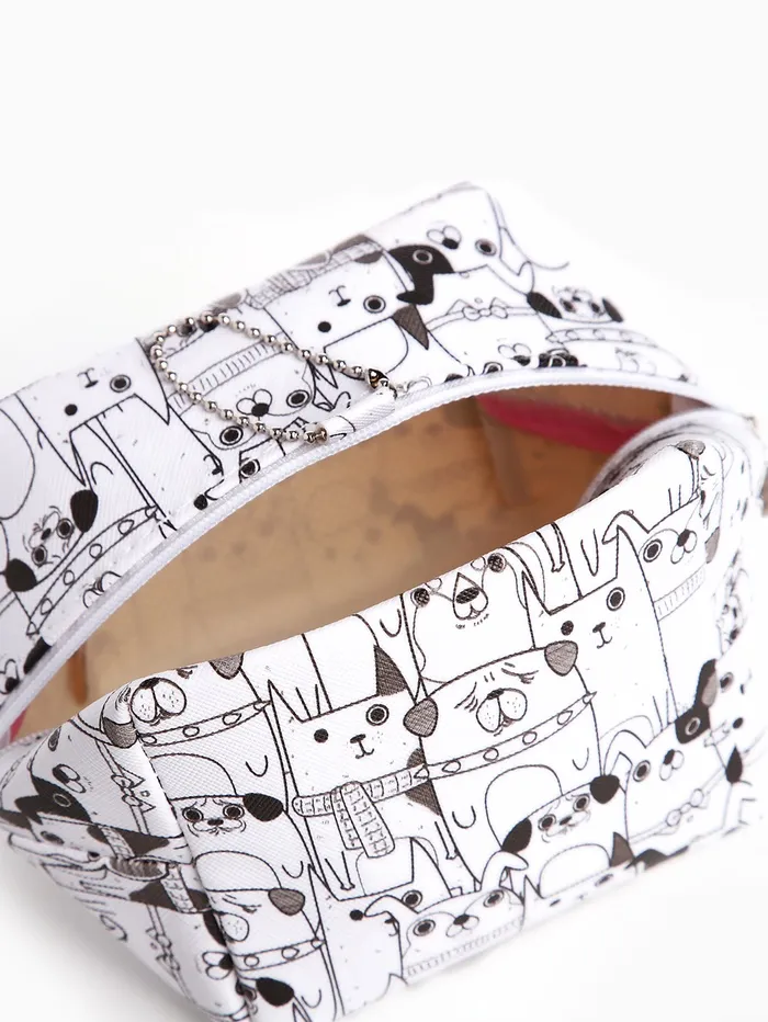 Мини косметичка на молнии подвесная, с принтом, чёрная/белая — Характеристики